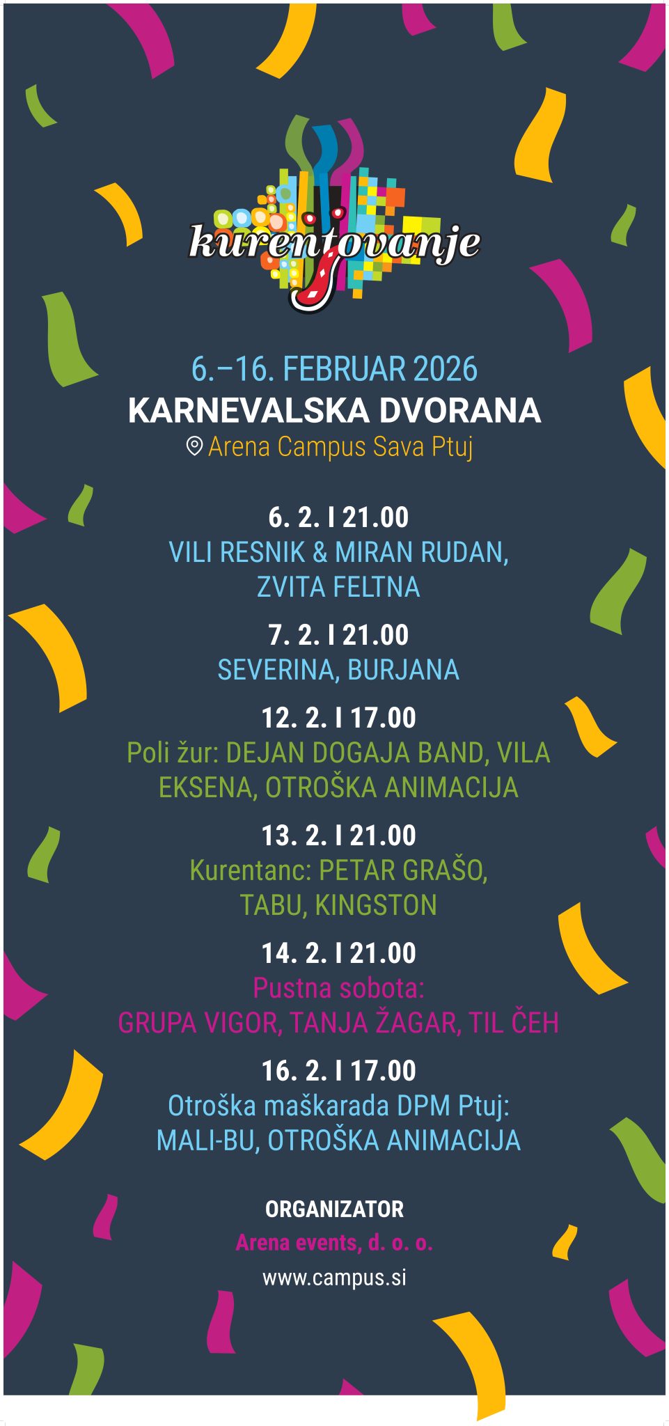 Arena Campus Sava na Ptuju bo ponovno središče zabavnega programa v času Kurentovanja.