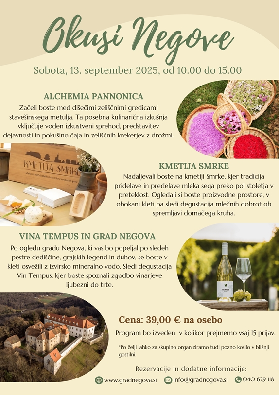 Rezervacije in dodatne informacije: info@gradnegova.si oziroma na telefonski številki 040 629 118.