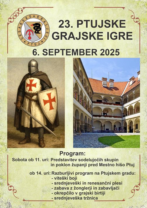 Doživetje zgodovine s skupinami, ki ohranjajo tradicijo in kulturo srednjega veka. Prihajajo od blizu in daleč, iz Slovenije, Hrvaške, Slovaške, Avstrije in nemškega pobratenega mesta Burghausen. V mestu zaživi srednjeveška tržnica. Dogajanje vsako leto obogatijo likovna kolonija, podelitev nagrad vinarjem in glasba na magičnih glasbilih na gradu. Program se začne s sprehodom skupin po mestu, ki se nato srečajo na Mestnem trgu. Popoldan bodo igre na turnirskem prostoru na Ptujskem gradu.